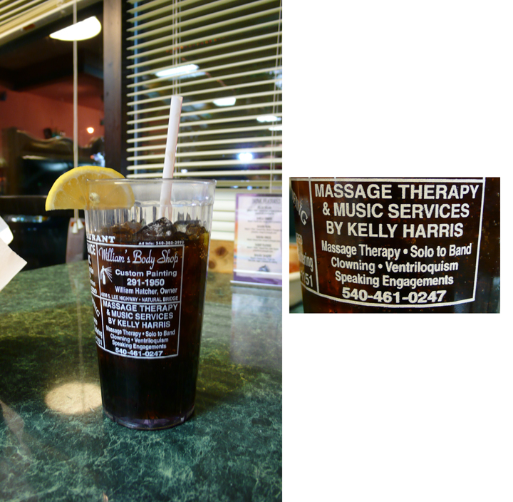 An Ad on the glasses at a Mexican restaurant in Lexington, Va.